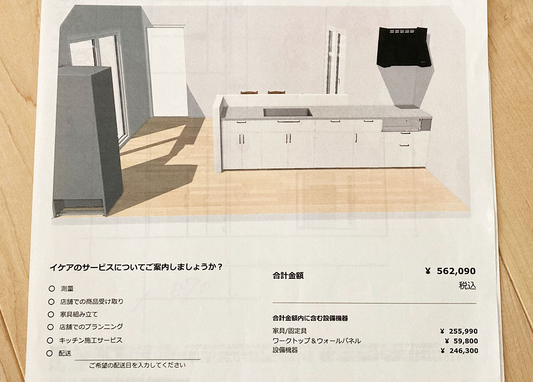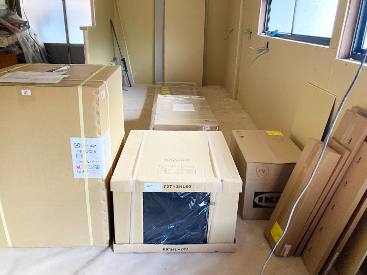 ちなみにIKEAの配送サービスは、施工場所にしか運んでくれません。キッチンから別の場所へ運搬するなら自分でやってね、ということです。