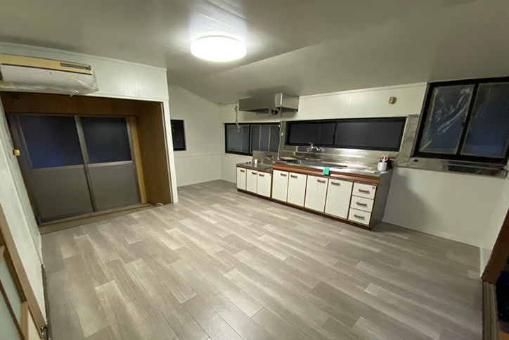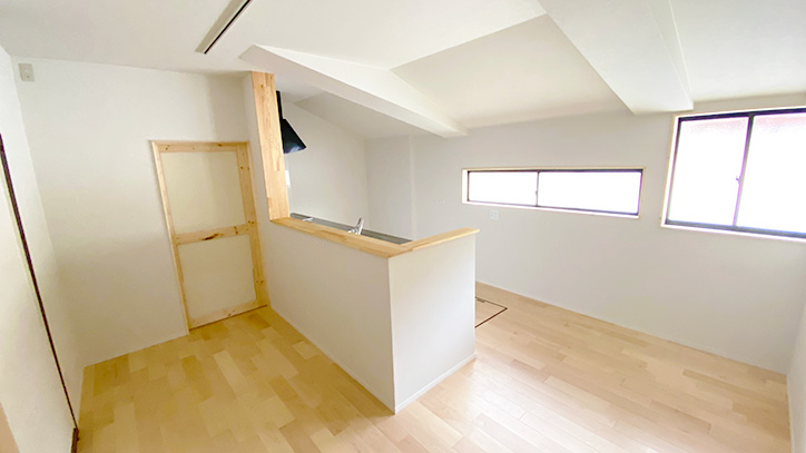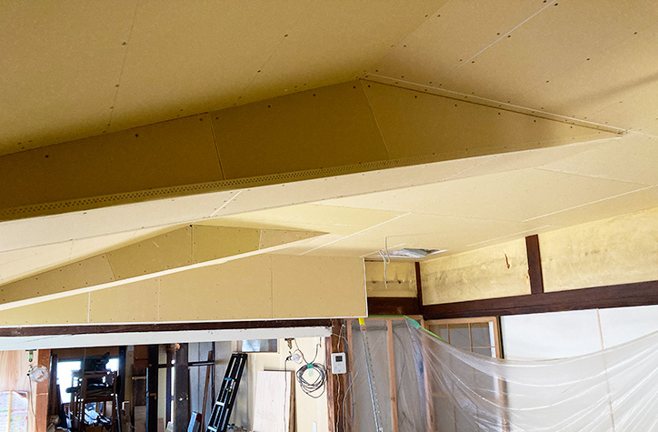 準備編にも記載した通り、消防法の関係で、レンジフードを設置する部分の天井高を2400mmに上げました。