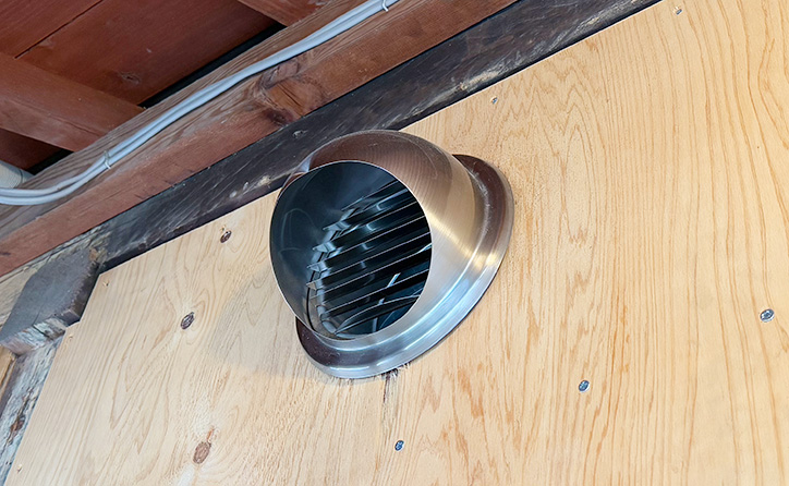 排気ダクトは雨水の侵入を防ぐため、1/100以上の勾配が必要です。