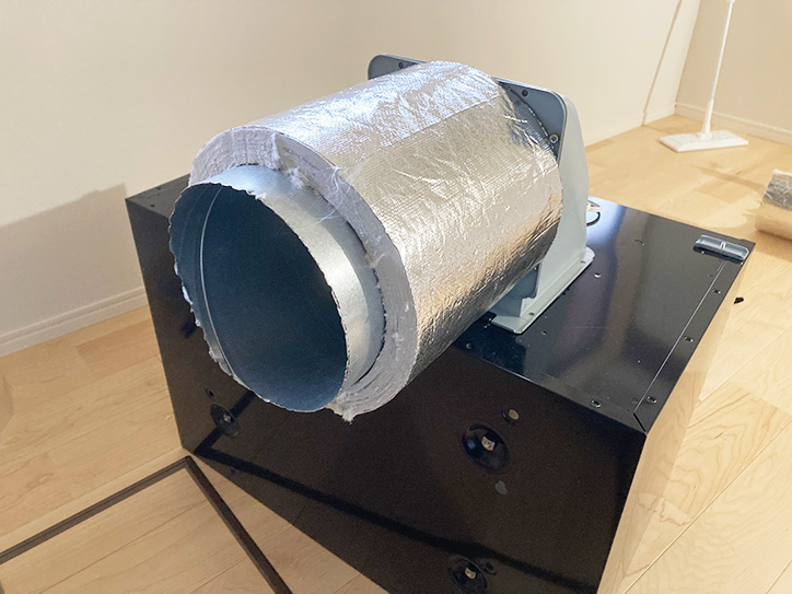 このL型ダクトを取り付けた後、スパイラルダクトとセラカバーSをカットし、本体に取り付けます。