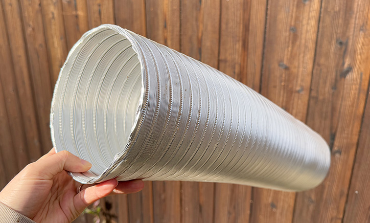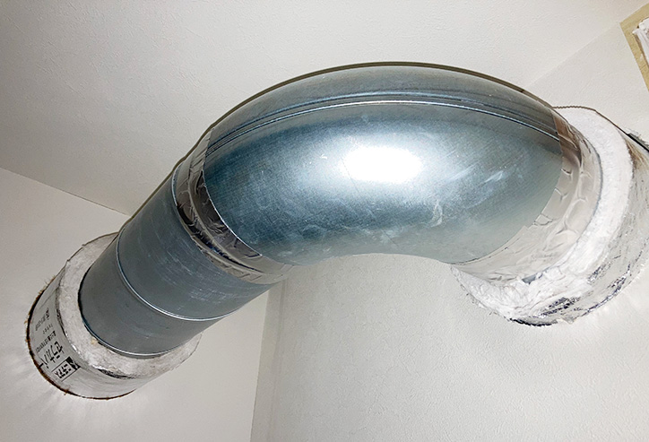 排気可能な外壁との位置関係のため、エルボでL字に曲げる必要がありました。