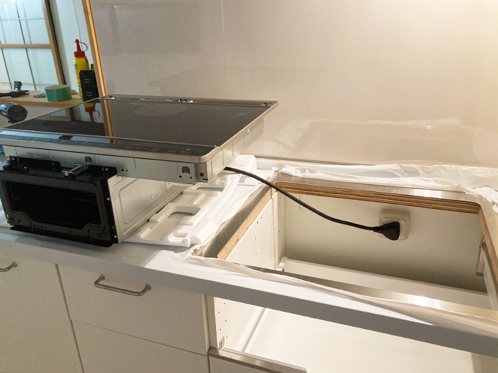 6. 施工説明書に従ってレンジフードを組み立てれば完成