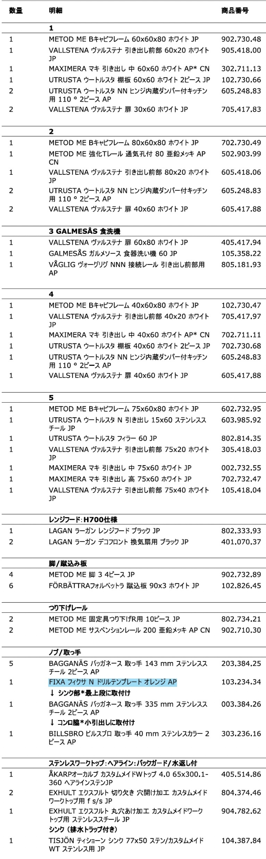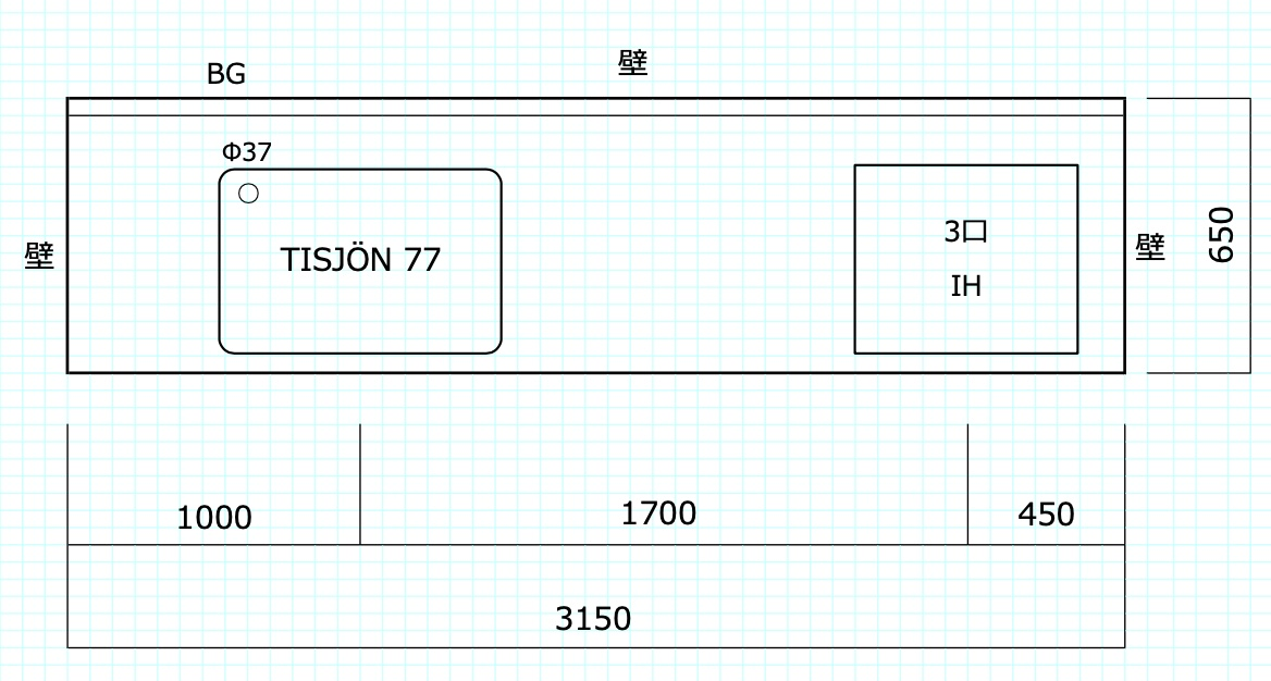 続いて、床に立ち上げる際の寸法は、IKEAから頂いた資料をもとに、以下のように決定しました。