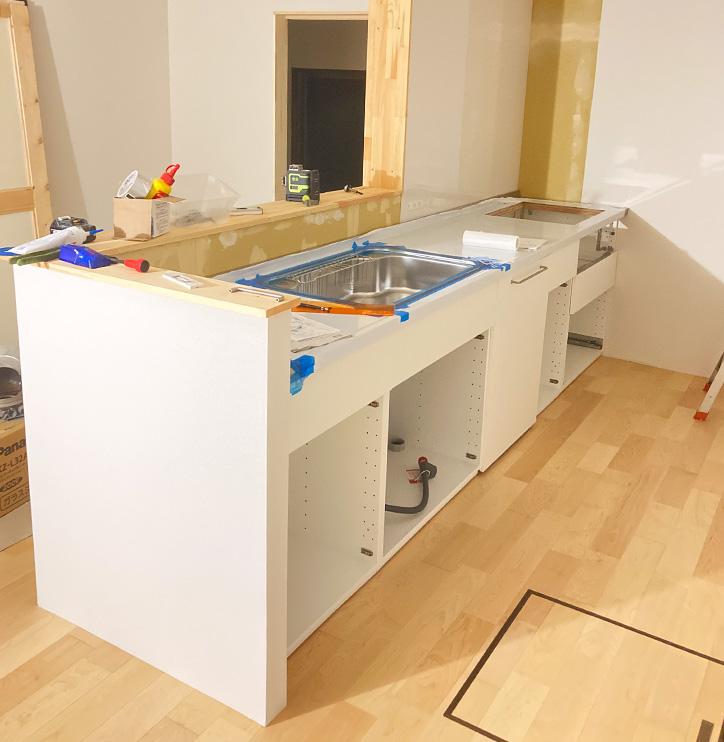 水栓や食洗機などと接続するのは、内装工事が終わってからになります。