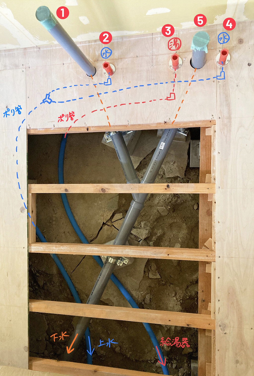 ここまで見ると、なぜ水栓の配管は真下ではなく、わざわざ反対側の遠いところに位置しているのかと思われるかもしれません。